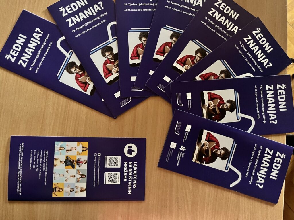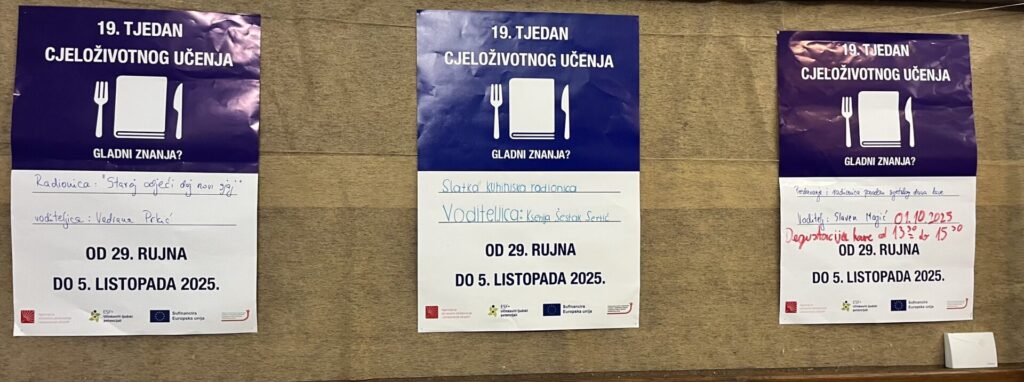 Tjedan cjeloživotnog učenja se odvija u organizaciji Agencije za strukovno obrazovanje i obrazovanje odraslih te se ove godine odvijao u razdoblju od 29. rujna do 5. listopada 2025. godine. Slogani su glasili: Gladni znanja? i Žedni znanja?