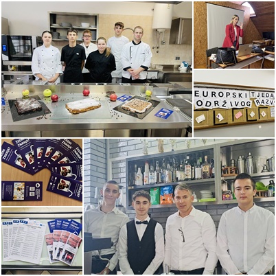 U našoj školi aktivnosti su u okviru 19. Tjedna cjeloživotnog učenja provela tri profesora strukovnih predmeta: Slaven Majić, Ksenija Šestak Sertić i Vedrana Prkić. Profesor Slaven Majić je povodom Svjetskog dana kave 1. listopada 2025. godine održao radionicu na kojoj su se učenici i djelatnici škole upoznali s okusima različitih vrsta kave. Svi prisutni su educirani s načinima pripreme napitaka od kave: espresso kava, macchiato, latte macchiato i cappuccino. Miris kave se taj dan posebno širio prostorima škole te je kabinet konobara bio mjesto susreta i druženja nastavnika i učenika degustacijom različitih vrsta kave. Dodatni doprinos je dala profesorica Ksenija Šestak Sertić koja je sudjelovala sa svojim učenicima 2.f razreda tako što su pripremili „Slatku kuharsku radionicu“ izradom nekoliko vrsta kolača od kave, a koji su se također mogli degustirati istoga dana. 29. rujna 2025. godine Vedrana Prkić je održala predavanje i radionicu na temu recikliranja i ponovne uporabe te održivog razvoja. Volonterke Školskog volonterskog kluba „Agape“ su od odjeće (tekstila) koji se više nije koristio izrađivale etuije (pernice) za kozmetiku i nakit te izrezivale, rukom šivale dio (napravile pripremu), a šivaćom mašinom ih je profesorica Sanja Stojanović završila. Na kraju su učenice dodavale detalje i zajedno a profesoricom Prkić napravile izložbu radova u školi, čime smo ujedno obilježili i deset godina Europskog tjedna održivog razvoja koji se odvijao od 18. rujna do 8. listopada 2025.godine. Profesorica Prkić je napravila i brošuru za događanja iz škole za Tjedan cjeloživotnog učenja koja je bila izložena u Vinkovcima u Pučkom otvorenom učilištu i na sajmu na Korzu. Na taj smo način sudjelovali i dali svoj doprinos kao škola ovim dvjema velikim događanjima i inicijativama u Hrvatskoj, ali i izvan Hrvatske.