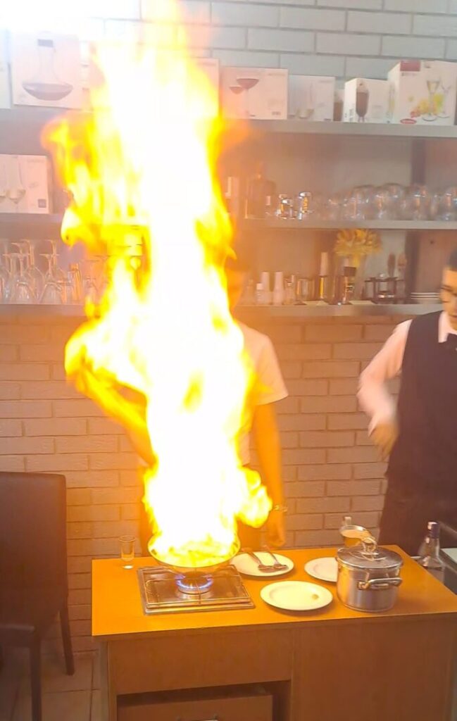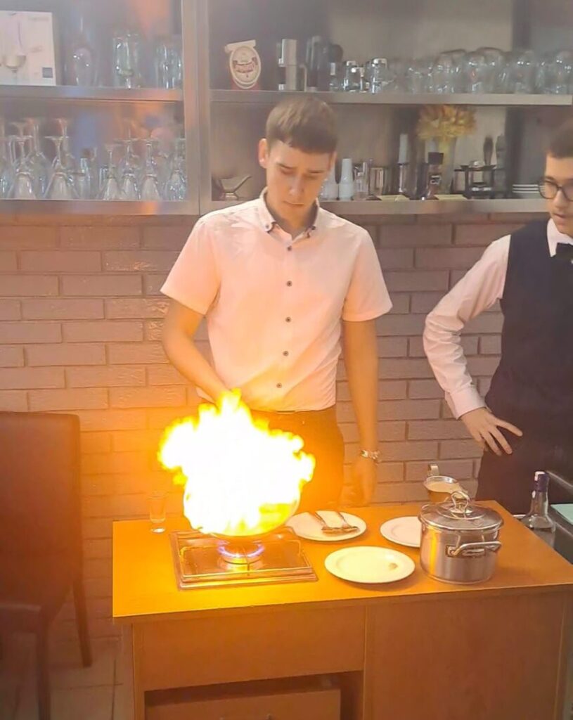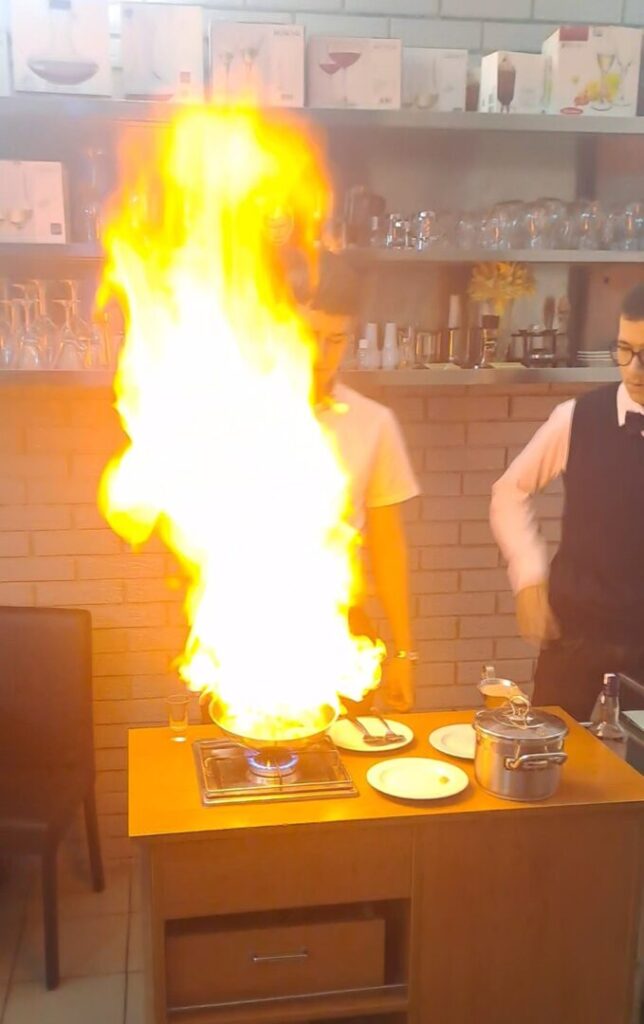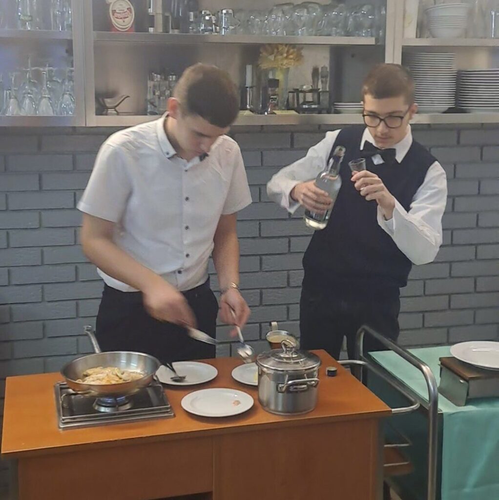 Učenici 3. f razreda, smjera konobar, pod stručnim nadzorom nastavnika Slavena, izveli su zadatak dovršavanja jela pred gostima primjenjujući tehniku flambiranja.