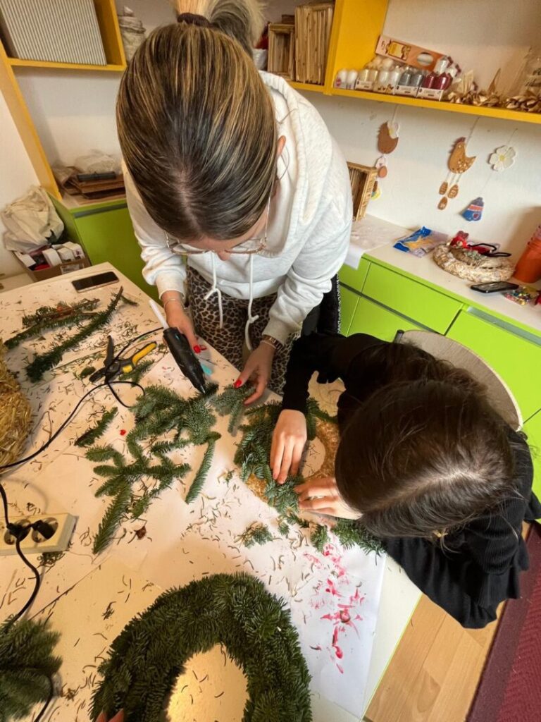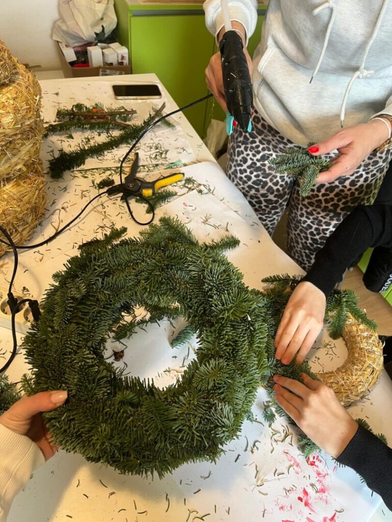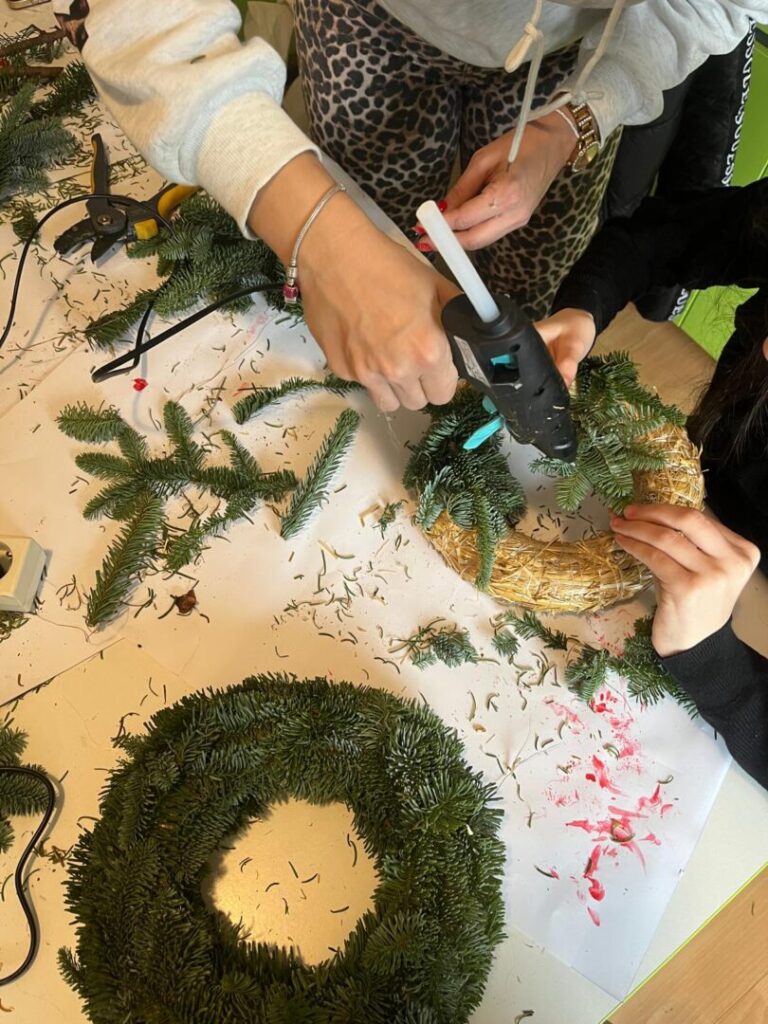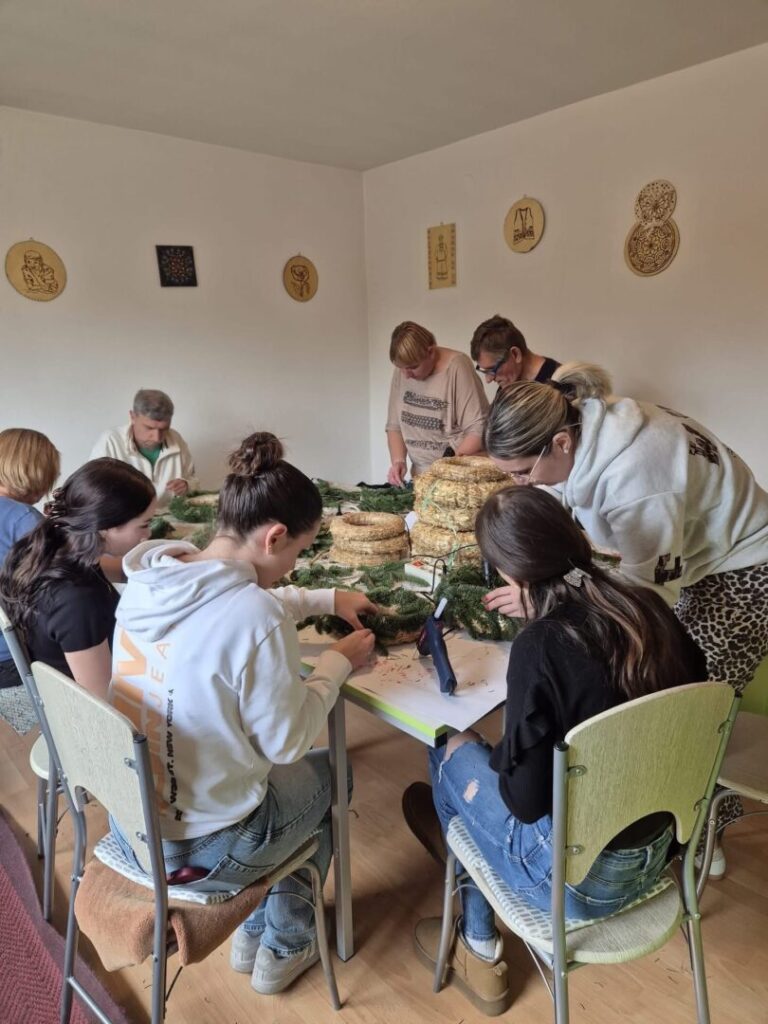Dana 13. studenoga 2025. godine učenice volonterke naše škole, zajedno sa svojom profesoricom i koordinatoricom volontera Vedranom Prkić, posjetile su Cjelodnevni boravak Crvenog križa. Tijekom posjeta pomogle su korisnicima u izradi adventskih vijenaca koji će biti izloženi na njihovom izložbenom štandu posljednje srijede u studenome.