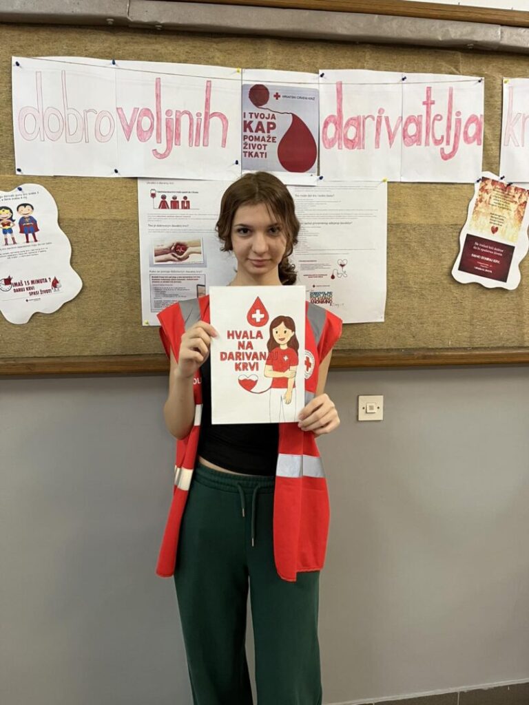 Povodom obilježavanja Dana dobrovoljnih darivatelja krvi 25.10., Školski klub Mladež Crvenog križa naše škole,  pripremio je poseban program u kojem su intervjuima, razgovorima, kvizom i mnogim drugim aktivnostima  obilježili taj dan i zahvalili svima koji nesebično daruju dio sebe kako bi drugima spasili život.