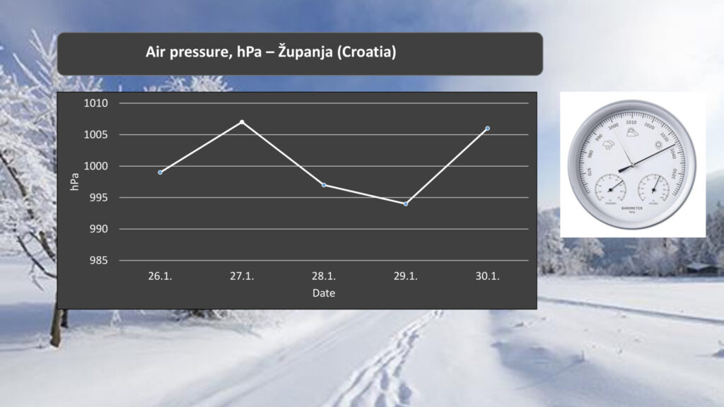 Učenici su tijekom siječnja 2026. godine očitavali, analizirali i grafički prikazivali meteorološke rezultate za Županju i okolna naselja. Uz učenike iz Hrvatske sudjelovali su i učenici iz Litve, Ukrajine i Slovenije. Cilj ove smotre bio je razvijanje kompetencija i vještina iz područja klimatologije i održivog razvoja.